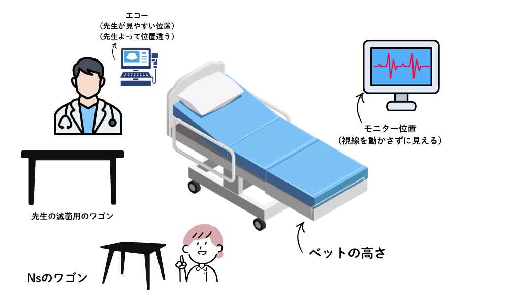 👉 「医師が振り向かなくても取れる位置」を意識すると◎